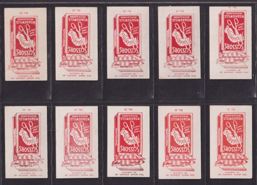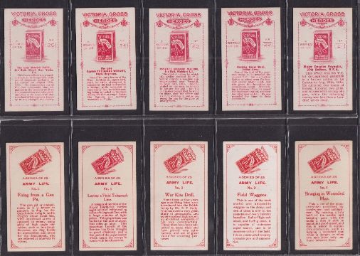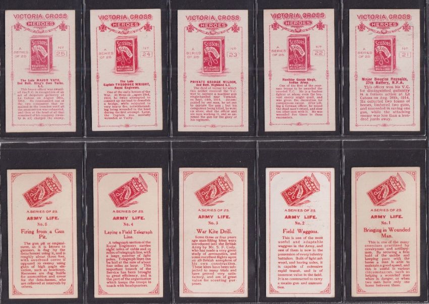 Cigarette cards, Wills Scissors Brand, 5 sets, Army Life, Victoria Cross Heroes, What it Means, Heroic Deeds, Actresses (Lilac frame) (gen gd a few fair, some sets better than others)
