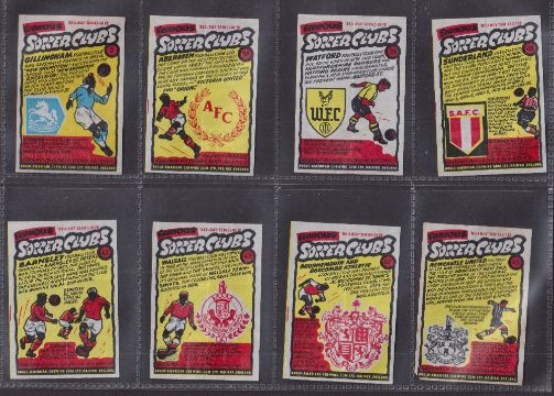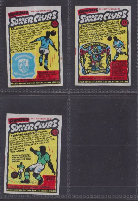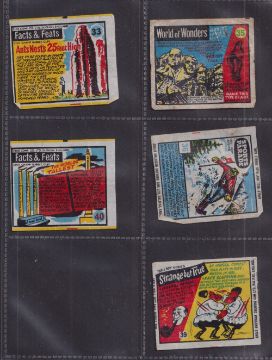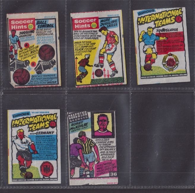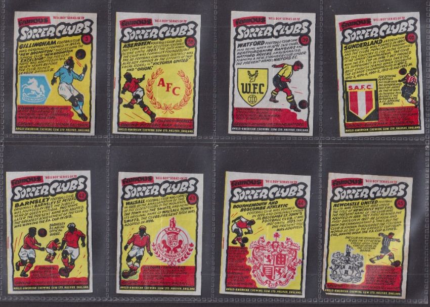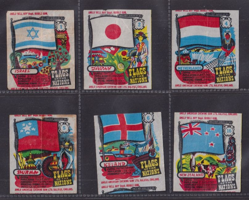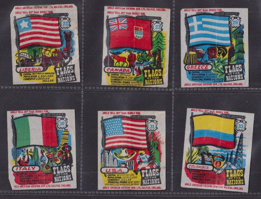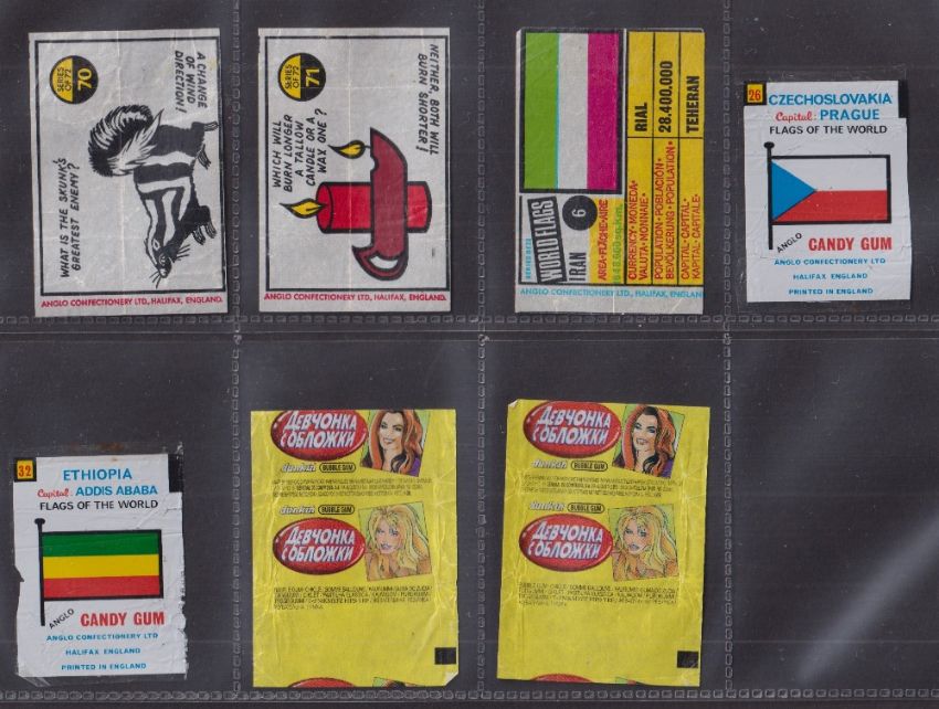 Trade cards, wax wrappers, Anglo Bell Boy Gum, 55 Wax wrappers from several series Space Encyclopaedia (3), various football (5), other series include Jokes, Flags, Men of Progress, Facts & Feats etc, also sold with 2 similar style Russian issues (usual creasing, otherwise gen gd)