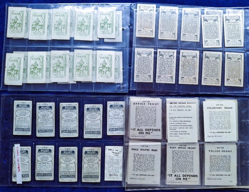 Cigarette cards, Small mixture, Hill Inventors Series black back (12), Wills Pirate Chinese Actresses (20), Wills Recruiting Posters (9), Martins Arf A Mo Kaiser (single card issue), Ardath It all Depends on ME (set 25 cards including Cotton), Ardath 4 different XL Calendars 1942 / 1943, Ardath Kitchen Front (single card issue), Ogden's Pugilists in Action (5) (gen gd a few fair)