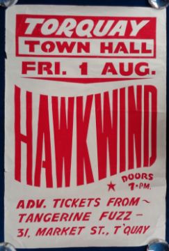 Entertainment, Hawkwind, Fri 1st August 1975 Torquay poster (approx. size 52 x 77 cms) (some light creasing and small tears to edges)