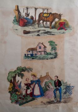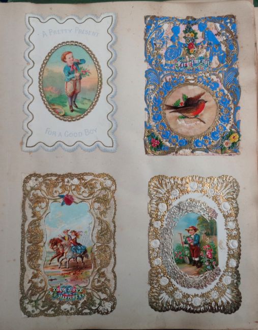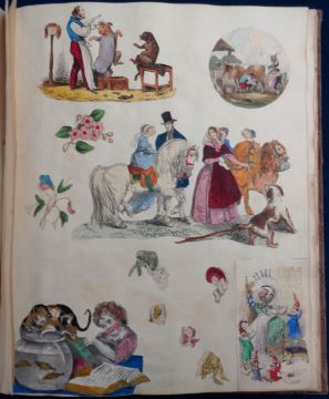 Scrap Books, 7 Victorian scrap books containing many 100s scraps and cards to include lace, decoupage, hand coloured engravings, cuttings etc. Royalty, anthropomorphic, animals, children, love, comic, stories, farming etc. All laid down double sided (scraps gen gd, albums gen poor)