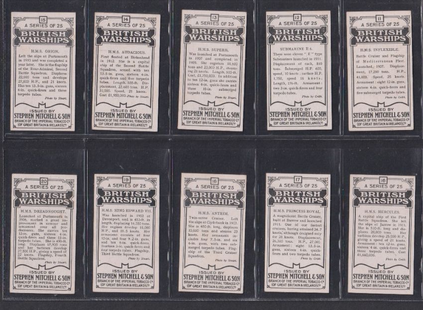 Cigarette cards, Mitchell British Warships 1st Series (set 25 cards) (gd/vg)