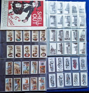 Cigarette cards, mixture of sets, part sets and odds, (several hundred cards) including Duncan Scottish Clans (5, toning on backs), Phillips Derby Winners (15), Mitchell Famous Scots (set 50 cards), Mitchell Scotland's Story (set 50 cards), L&B Motorcycles 35/50, Churchman East Suffolk Churches Sepia (set 50 cards), Churchman West Suffolk Churches (set 50 cards), plus a few issues by Players & Wills, sold with a Shell Out paper back booklet from 1936 (mixed gen gd or better)