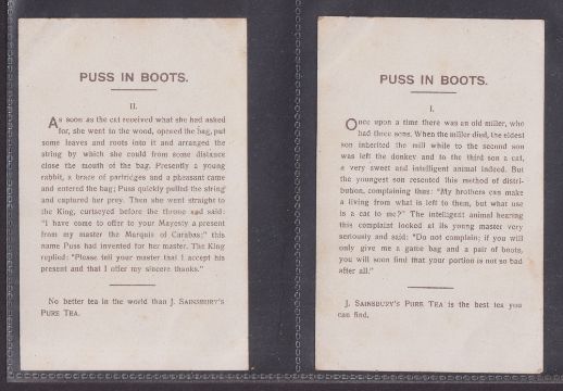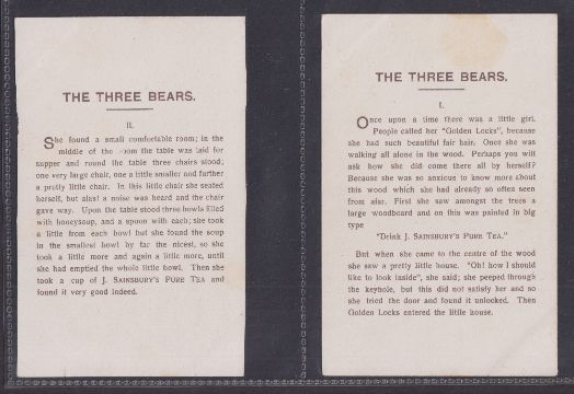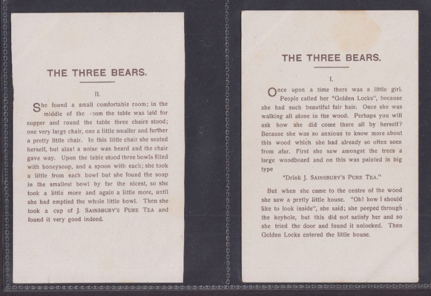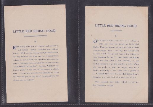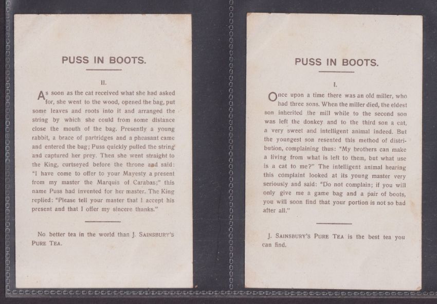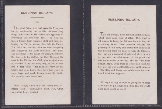 Trade cards, J Sainsbury (Shops), 4 P Sized sets of 6 cards, Sleeping Beauty, Little Red Riding Hood, Puss in Boots, Three Bears (mostly just gd, a couple fair)