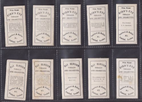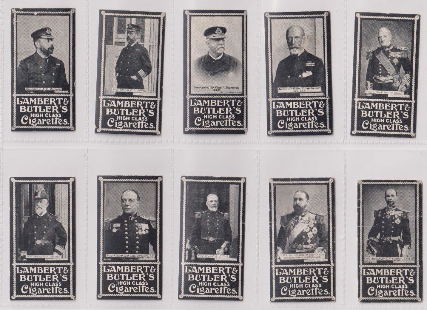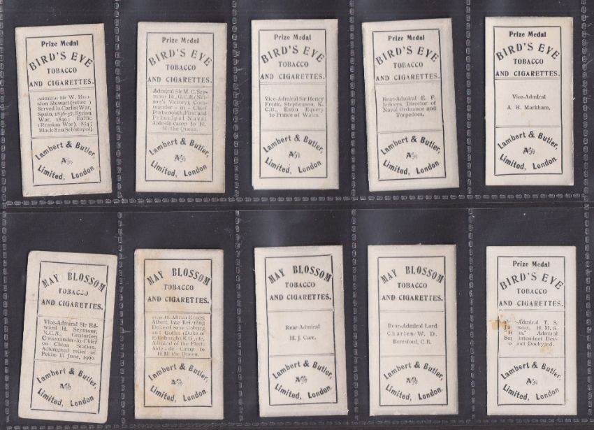 Cigarette cards, Lambert & Butler, Admirals, 10 cards 'Birds Eye' backs (6, 5 gd 1 slight back damage), May Blossom backs (4, fair/gd)