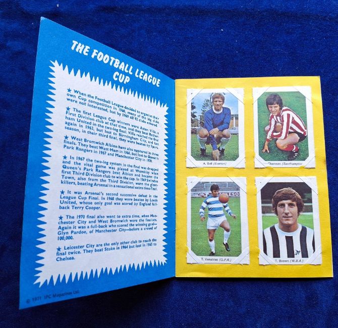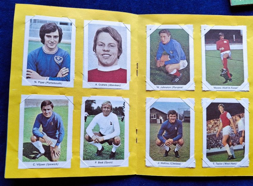 Trade cards, IPC Magazines My Favourite Soccer Stars, 7 complete sets of 32 and 2 part sets, all corner mounted in special albums, Complete sets are Tiger (back cover Man City), Scorcher, Buster / Jet, Scorcher / Score, Valiant / TV21, Lion / Thunder, Lion, plus part sets Buster 16/32, Tiger (Spurs back Cover 24/32) (albums and cards gen gd)