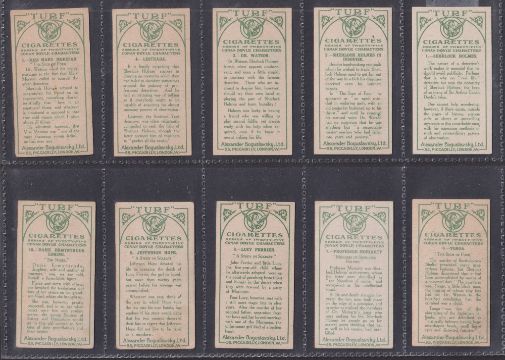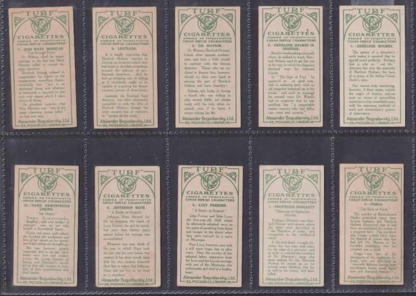 Cigarette cards, Boguslavsky Conan Doyle Characters Green Backs (set 25 cards) including Sherlock Holmes (2 cards nos. 6 & 23 slight grubby backs rest gen gd/vg)