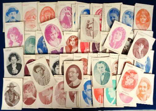 Trade cards, Spain, La Novela Semanal Cinematografica (The Weekley Film Novel magazine), a collection of approx. 200 postcard size cards of Cinema Stars issued in the 1920's/30's including Harold Lloyd, Hoot Gibson, Lon Chaney, Mary Astor, Greta Garbo, Mildred Harrys Chaplin (Charlie Chaplin's first wife), Natalie Talmadge Keaton (Buster Keaton's wife) etc (a few with slight marks & minor creasing, mostly gd)