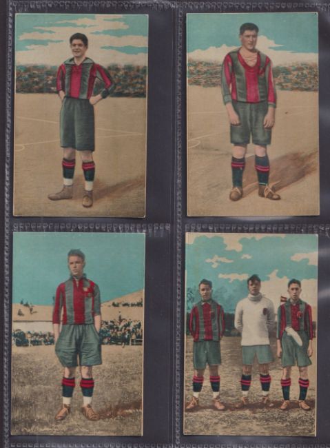 Trade cards, Spain, Eduardo Pi, Chocolate, Footballers & Match Action, all featuring Barcelona FC, 1920's, teamgroup, individual players inc. Zamora, Samitier, Alcantara etc, various match action shots including games v Notts County, St. Mirren, Ilford, Crook Town (set, 42 cards) (some with faults, fair/gd)