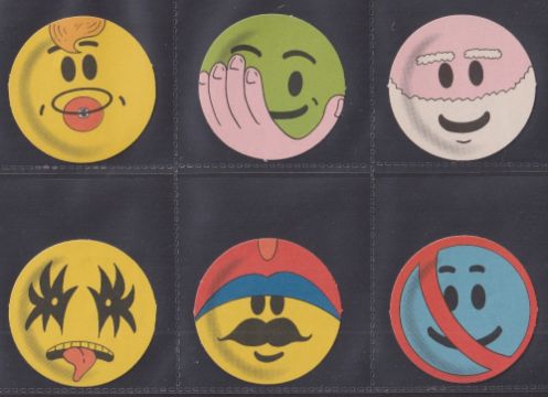 Trade cards, Monty Gum, Just Smile Series (set 104 cards plus wrapper), various shapes & sizes. Cards feature early emoji faces (vg)