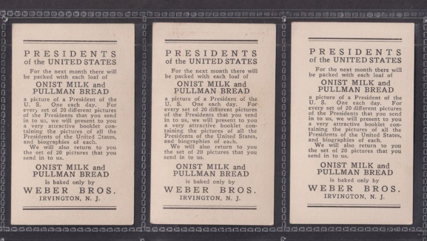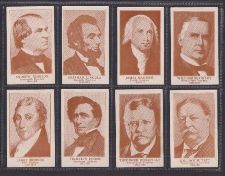 Trade cards, USA, Weber Bros (Onist Milk & Pullman Bread), Presidents of the United States (27/29, missing Polk & Taylor) (gd/vg)