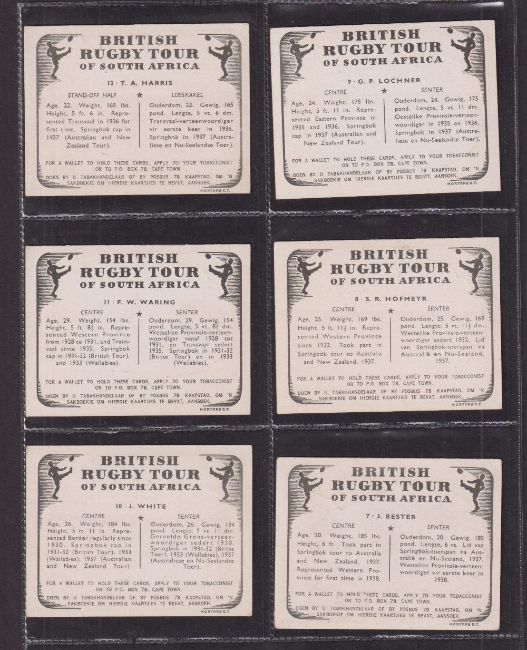 Cigarette cards, United Tobacco Co South Africa, British Rugby Tour of South Africa (set 62 cards) (gen gd/vg)