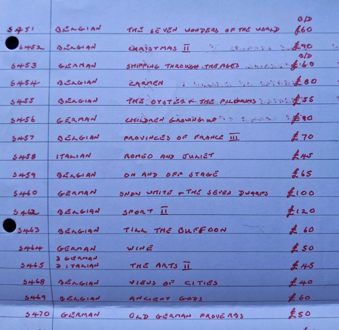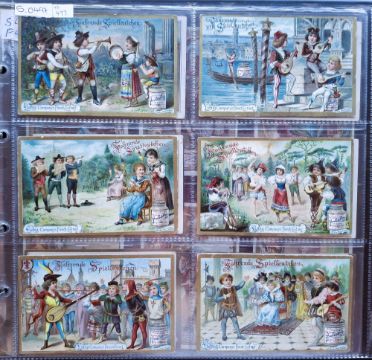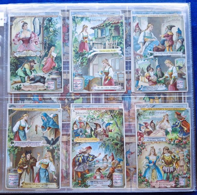 Trade cards, Liebig, a collection of 39 sets S451-S500, mixed language editions German, Belgian, & Italian issues, (34 sets are all the same language 5 sets have cards with two or more languages) titles include S460 Snow White & Seven Dwarves, S462 Sport II, S493 Valiant Tailor etc (mixed condition majority fair/gd, 2 series have back damage, S451 & S453)