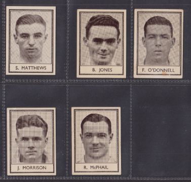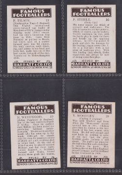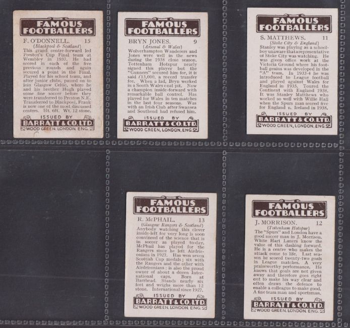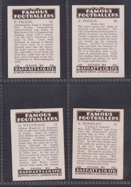 Trade cards, Barratt Famous Footballers 1938/39 16/20 (BAR-280) missing Hall, Massie, Oakes, Walker. Includes Stanley Matthews etc (O'Donnell card foxing, fair rest gd/better)
