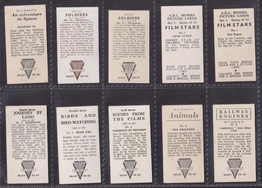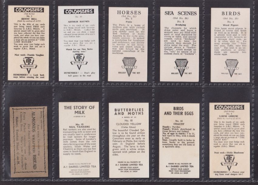 Trade cards, a collection of 103 type cards, all from issuers with the initial 'A' inc. ABC Cinemas, A-1 Dairies, P.A. Adolph, Arrow Confectionery, All-British Tea, Samuel Allen, Alma Confectionery, Amalgamated Press, Amaran Tea etc, some scarce series noted (mostly gd/vg)