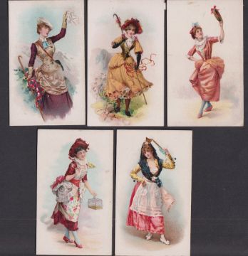 Cigarette cards, USA, Duke's, five 'X' size type cards, French Novelties, ref. N110, pictures nos 5, 7, 23, 24 & 25 (gd) (5)