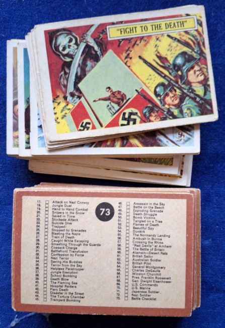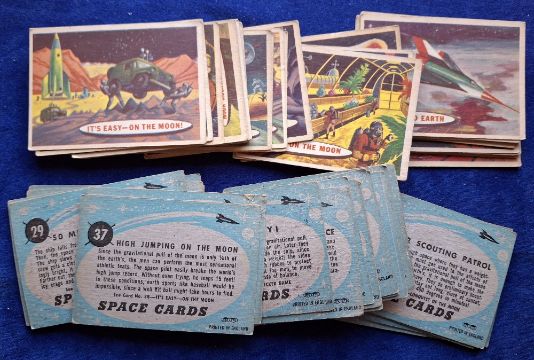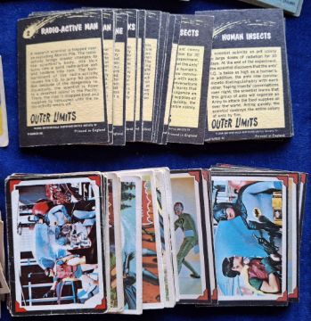 Trade cards, A&BC Gum, mixture, over 330 cards from 5 series plus wrapper. Battle Series (set 73 cards plus approx. 140 duplicates), Batman Red Bat (19), Batman black backs (19), Space cards (55 cards fair/near gd), Outer Limits (37, only 25 different), sold with a wrapper from the Civil War News Series (slight brown staining) (cards fair/gd many gd unless stated above)