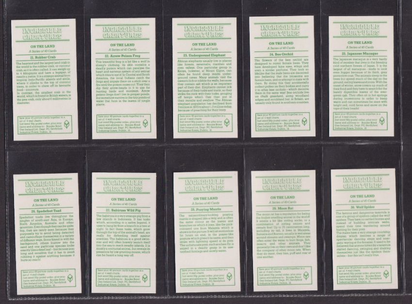 Trade cards, Brooke Bond, Incredible Creatures (green back Irish issue) (set 40 cards) (vg/ex)