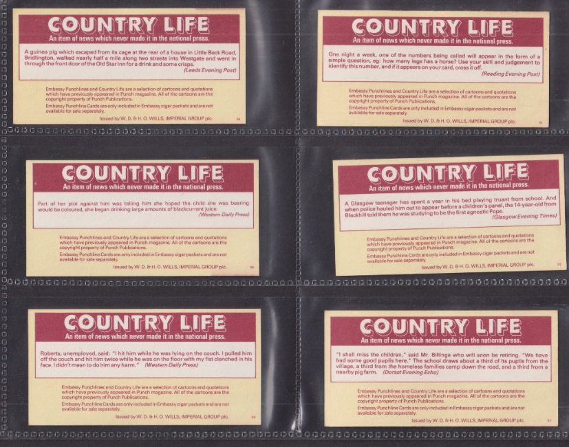 Cigarette cards, Embassy Punchlines (oblong size version) (set 288 cards) (gen vg/ex)