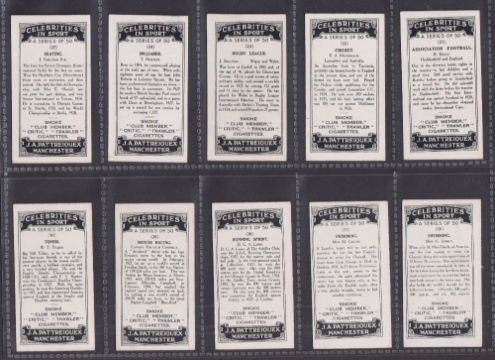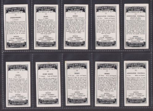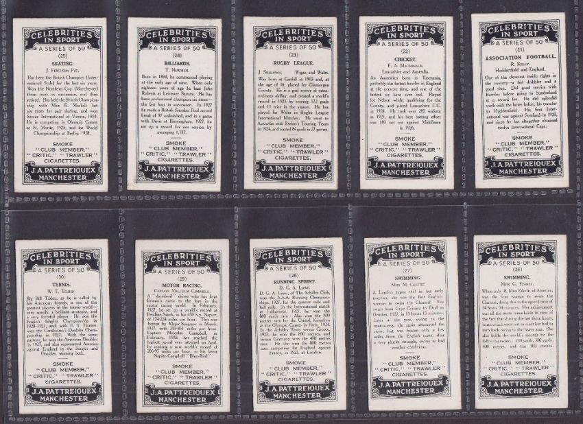 Cigarette cards, Pattreiouex, Celebrities in Sport (set, 50 cards) inc. Dixie Dean, Hughie Gallacher, Bobby Jones etc (gd)