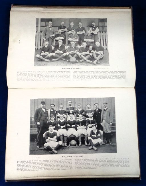 Book, 'The Sportfolio. Portraits and Biographies of Heroes and Heroines of Sport and Pastime' published by Newnes 1896 originally published in parts, with many illustrations bound in publishers board covers with gilt lettering and illustrations to cover, 140 pages with full length pictures of Sportsmen of the day with small pen pictures. Includes Cricket, Football, Tennis, Golf and much more, noted W G Grace, C B Fry, J H Taylor, teamgroup pictures for Bolton Wanderers, Millwall, Preston North End & Woolwich Arsenal etc (some wear, gen gd)