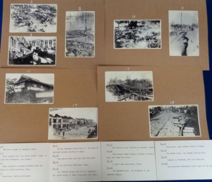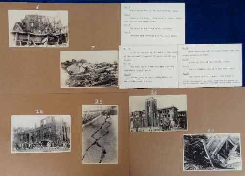 Photographs, 1923 Kanto Japanese Earthquake 26 laid down b/w shocking images on card of the aftermath of the massive earthquake, all annotated on separate cards. Images show death and destruction (1 missing, gd)