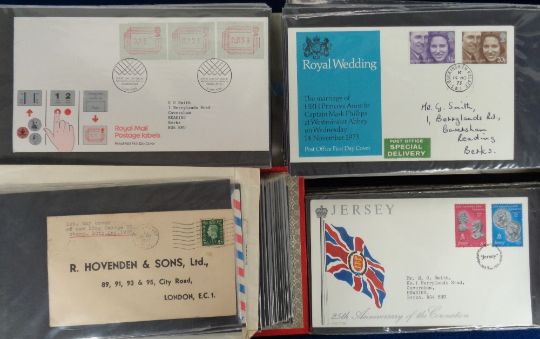 Stamps, GB QEII collection of first day covers housed in 6 albums to include 1973 Royal Wedding with Buckingham Palace handstamp. 100s