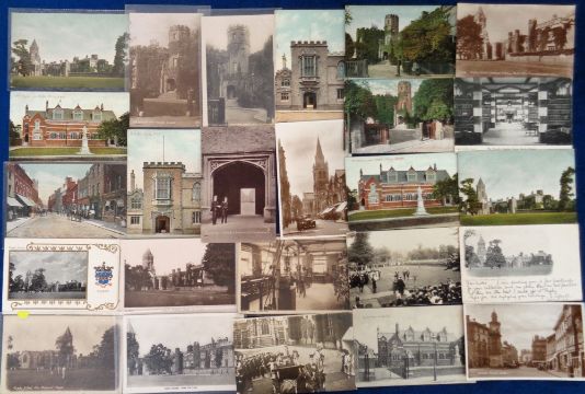 Postcards, Warwickshire, Rugby collection, inc. 38 postcards of street scenes, RPs, Parks, Library, School, Visit Edward VII, together with a few prints and modern brochures etc. (gen gd) (approx. 45)