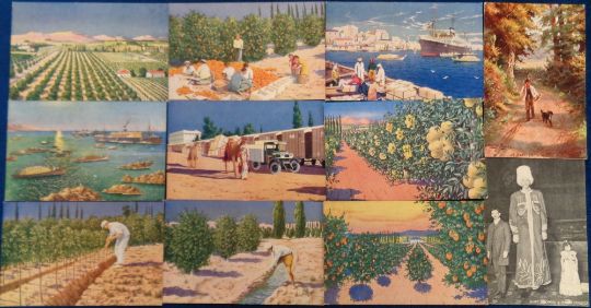 Postcards, a mixed subject collection of approx. 30 cards, with 10 advertising cards for Jaffa Oranges, Harry Payne rural, A.R Quinton (4), dog, cat, P.M for Postage Stamp Exhibition Congress 1909, World's Fair St Louis 1904 (3), RP of Lillian Harvey, Miniature Rail at Boot, RPs of soldiers in uniform (2), wedding, tallest man (2) etc (mainly gd)