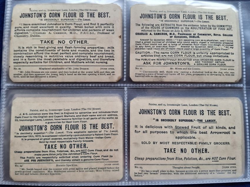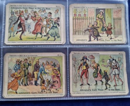 Trade cards, Johnston's Corn Flour, Sketches by 'Boz' (set 24 cards) (corner wear / damage, toning, grubby)