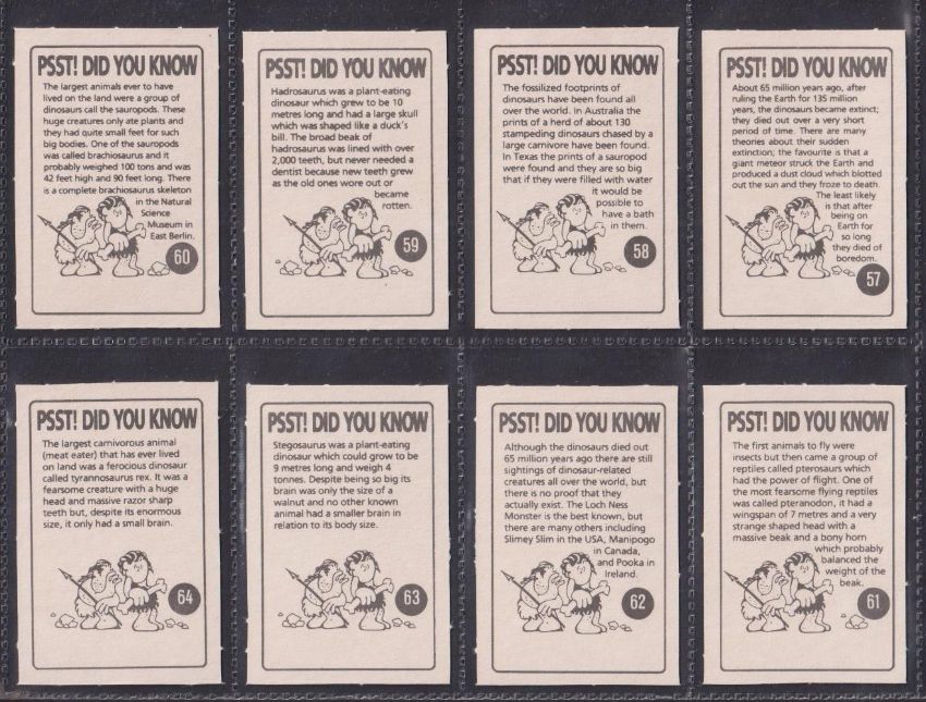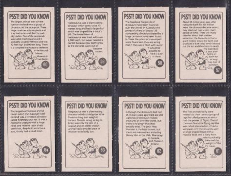 Trade cards, Anonymous (in the style of Unusually Funny Factory) Dinosaurs (set 64 cards) (vg)