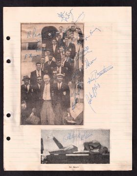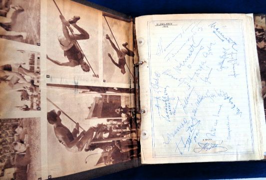Athletics autographs, a scrapbook containing a collection of 1950's & 1960's signatures on paper, magazine & newspaper cuttings with athletes from USA, West Germany, USSR, Finland, East Germany, Czechoslovakia etc, many Gold & other Olympic Medal Winners inc. Vladimir Kuts, Emile & Dana Zatopeck, Olga Filotova & Hal Connolly (both Gold Medallists in 1956 Olympics & later married in Prague), Al Oerter, Tom Courtney etc. 400+ signatures in total (gd)