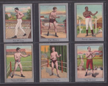 Cigarette cards, USA, ATC, Champion Athlete & Prize Fighters, 'L' size, all Mecca Cigarettes back with silver borders to fronts, 21 different cards, all Prize Fighters, ref. T220, including Jack Dempsey, World's Champion (one small corner knock, gen. vg) (2 with back damage, some with slight edge knocks, gen. gd) (21)