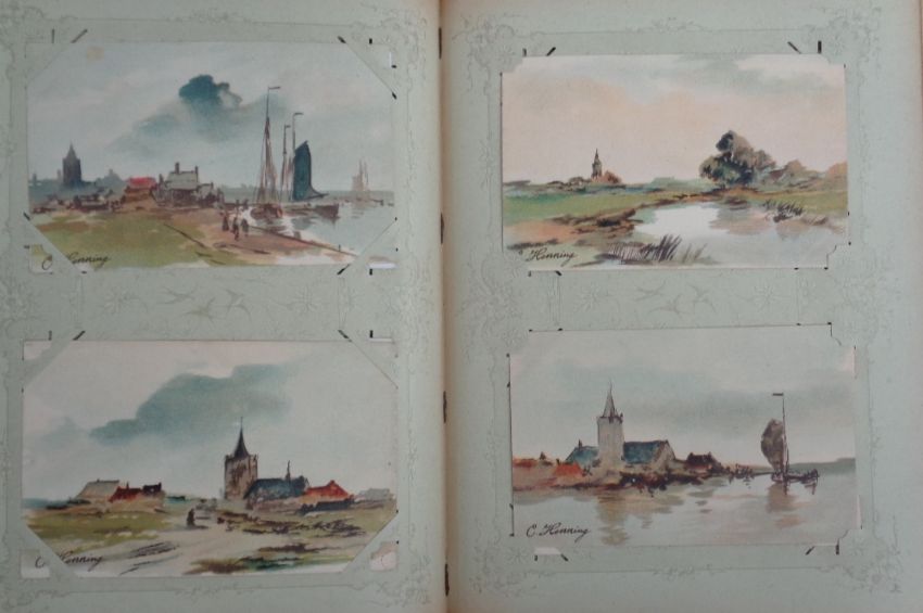 Postcards, an illustrated UK scenic view collection of approx. 269 cards in vintage album. All scenic UK views illustrated by Charles Flower, FE, A.R Quinton, Corke, W Ball, S Stannard, Douglas, Longstaffe, Richardson, Carruthers etc. Publishers include Salmon and Tuck (mixed condition)