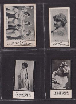 Cigarette cards, A Baker, Actresses, 4 type cards, Actresses (3 Sizes) 'Misses Wynne' 'L' size (fair), Actresses (3 Sizes) standard size 'Dorothy Baird', Actresses BLARM (58mm long) 'Chavita' & Actresses BLARM (64mm long) 'Selwick' (1 fair, 3 gd)