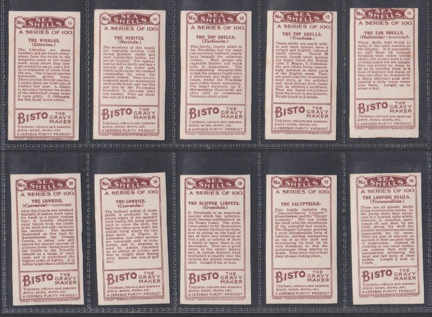 Trade cards, Cerebos, Sea Shells (set 100 cards) all with 'Bisto Gravy Maker' backs (gen gd)