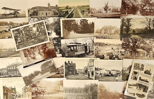 Postcards, Berkshire, a mix of approx. 29 cards of Mortimer and Wantage and environs, with RPs of Berks Aviation Tours East Hanney, The Street Mortimer (Terry Hunt), Mortimer Village, Mortimer Vicarage, The Street Mortimer (Collier), Crockers Mortimer etc. Also Market Place Wantage, 'Ardington' Wantage, St Katherines School Wantage. Also good printed street scenes and village views, with interior of Wantage Rd Stn (gd)
