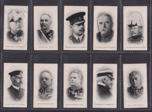 Cigarette cards, Taddy Admirals & Generals The War, 10 cards numbers 1, 2, 3, 5, 6, 10, 12, 13, 18 & 19 (gd)