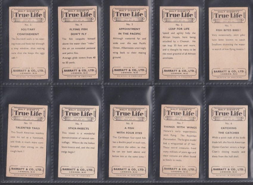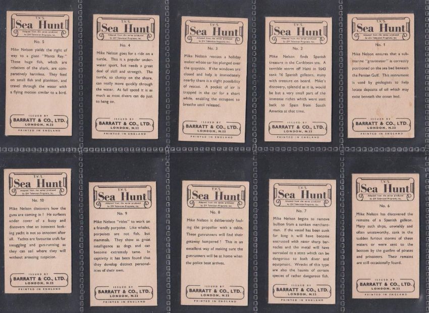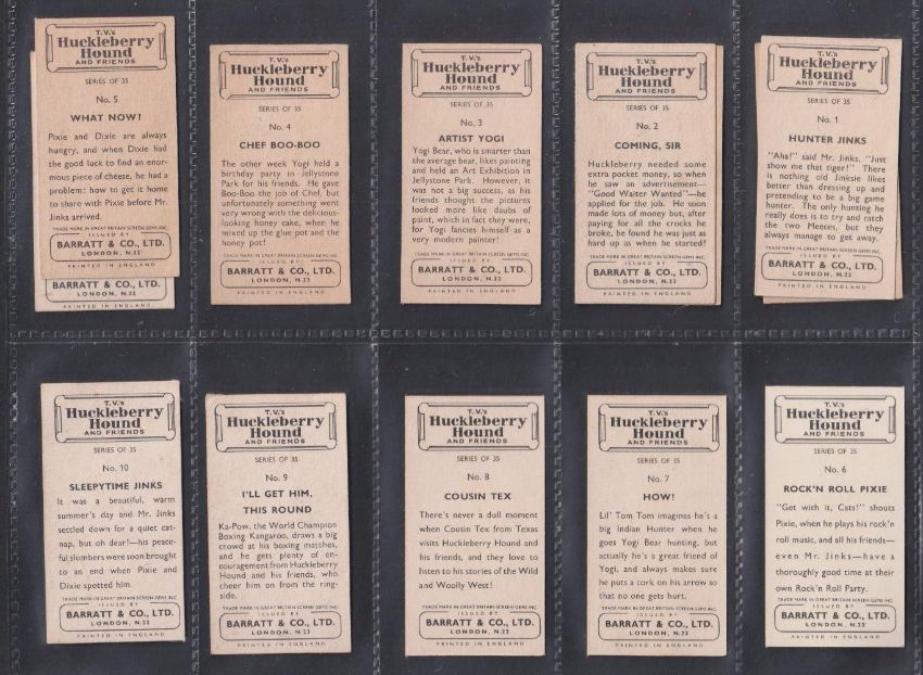 Trade cards, Barratt, 3 sets TV's Sea Hunt, Walt Disney's True Life, TV's Huckleberry Hound & Friends (all sets of 35 cards) plus a few duplicates (some cards white backs most cream / brown backs, gen gd)