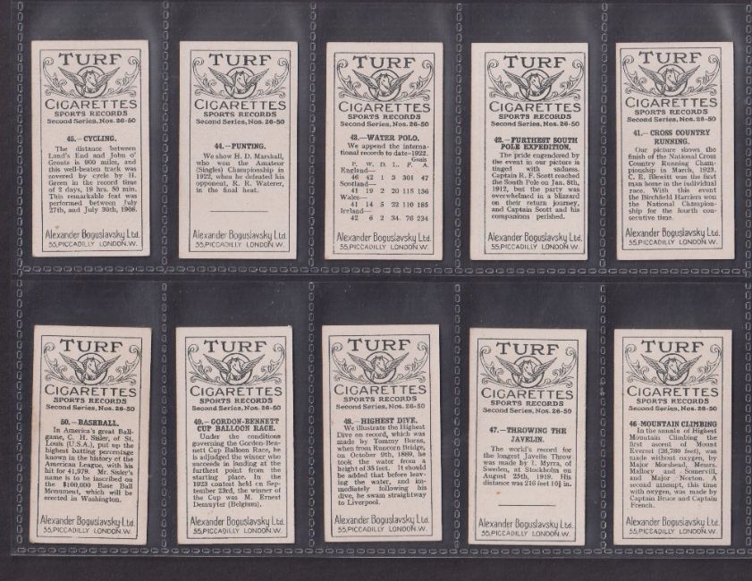 Cigarette cards, Boguslavsky, Sports Records (1-25) and (26-50), (two sets, 25 cards in each) includes Baseball (gd) (50)
