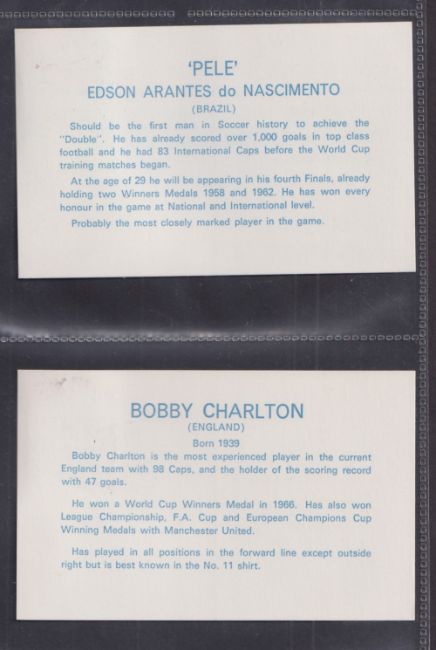 Football, Nicaragua Football Hall of Fame Postcards, set of 11 postcards featuring the World Poll Winners 1970 inc. Pele, Bobby Charlton, Stanley Matthews, Billy Wright etc, each one with special stamp & catchet (vg) (11)