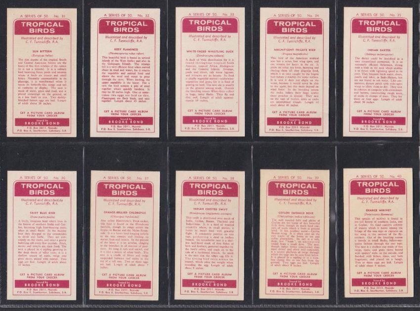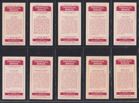 Trade cards, Brooke Bond, Rhodesia issue, Tropical Birds (set 50 cards) red backs (vg a few gd)