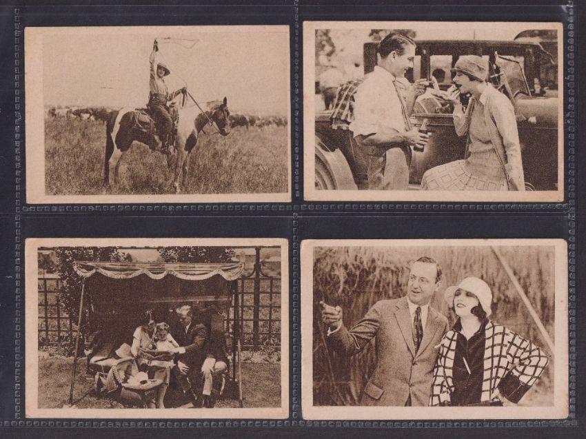 Trade cards, Spain, Amatller, Cinema Artistes, 'Serie A' Film Artistes in Social Settings, sepia (set, 40 cards, fair/gd) & 'Serie B', b/w with red surround (23/32, gen. gd) (63)