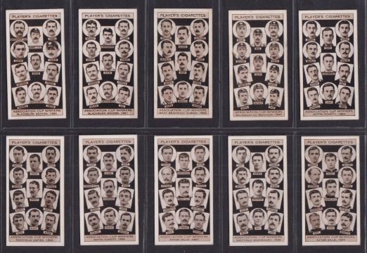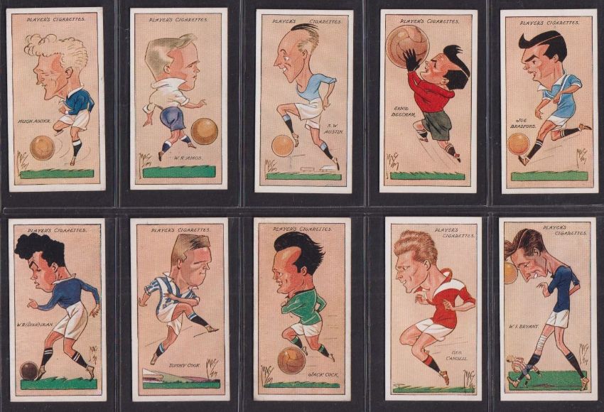 Cigarette cards, Football, 12 sets, Carreras (3, Popular Footballers, Famous Footballers, Famous Footballers 25-48 redrawn), Churchman (2, Association Footballers 1st & 2nd), Wills Association Footballers Frame back, Players (6, Association Cup Winners, Footballers MAC, RIP, Footballers 1928, Footballers 1928/29, Hints Association Football) (mixed, gen gd)