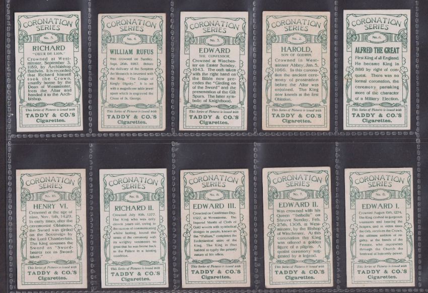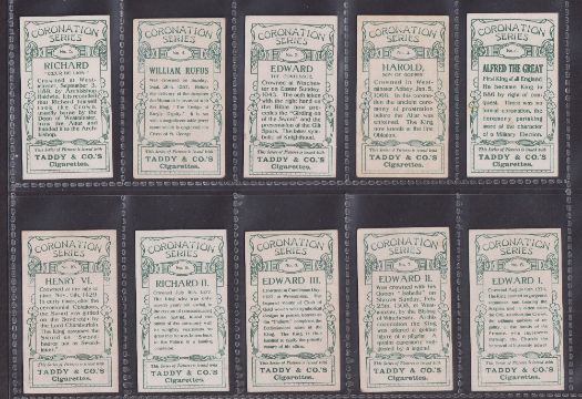 Cigarette cards, Taddy, Coronation Series (set, 30 cards) (gd)