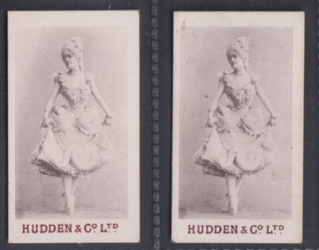 Cigarette cards, Hudden's, Beauties, 'HUMPS', two cards, both the same picture, ref. H222, picture no 19, one Orange back (vg), the other Blue back (slight marks, gd) (2)