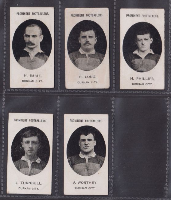 Cigarette cards, Taddy, Prominent Footballers (No Footnote), Durham City, five cards, H. Imrie, R. Long, H. Phillips, J. Turnbull and J. Worthey (a few slight marks & minor faults, gen. gd) (5)