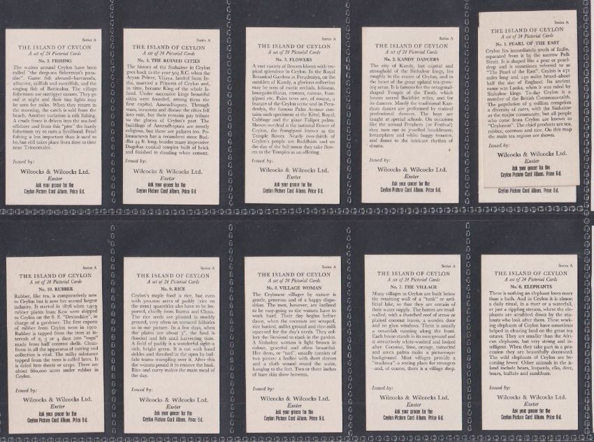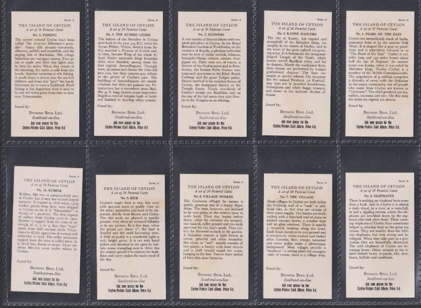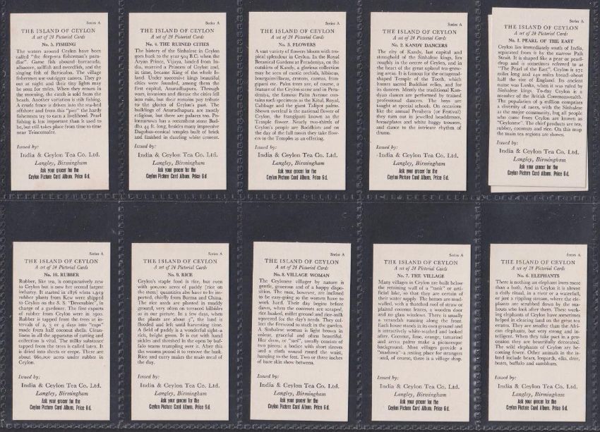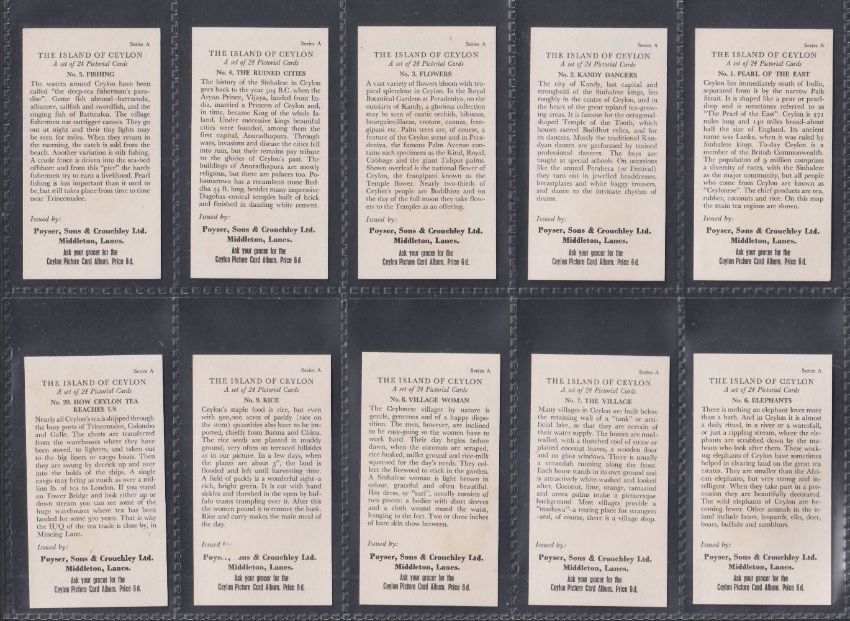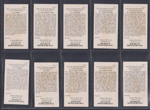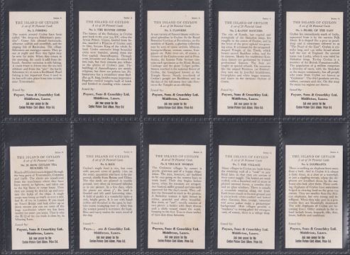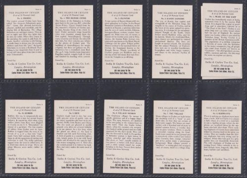 Trade cards, The Island of Ceylon, 3 sets plus 1 near set. Sets are Poyser Sons & Crouchley, Wilcocks & Wilcocks, India & Ceylon Tea Ltd, part set Browne Bros 23/24 (missing no. 22) (gen gd)