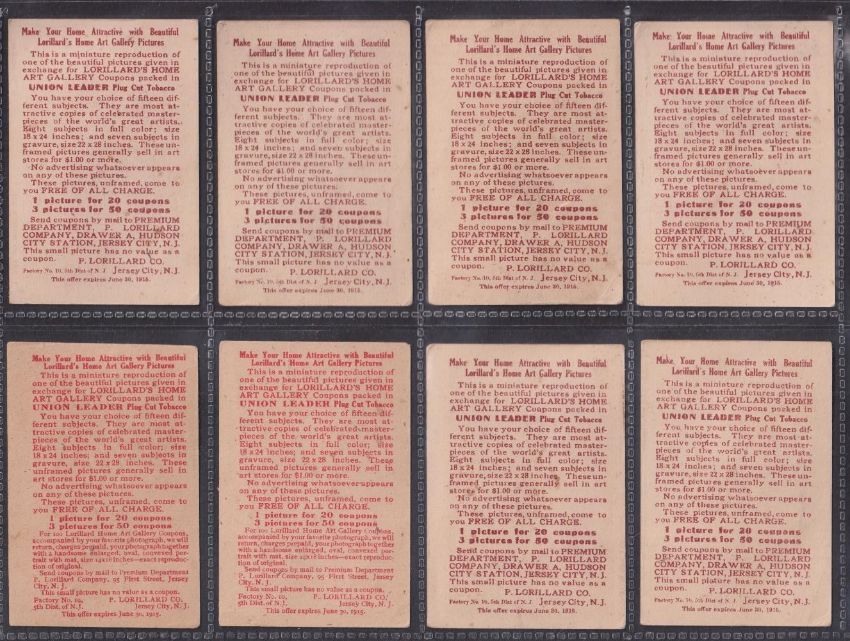 Cigarette cards, ATC, Home Art Gallery Series Forbes Mitchell ref T31, 20 cards; red backs coloured fronts (7), red backs sepia fronts (2), Brown backs sepia fronts (6), Brown backs coloured fronts (5) (fair/gd)