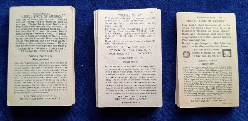 Trade cards, Church & Dwight Useful Birds of America, 3 sets Series 2, 4 (both 30 cards) & 8 (15 cards) (gd)